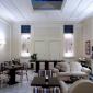 As paredes e o chão do hall revestem-se de mármore e esse espaço é iluminado pelo brilho dos lustres deco pincelados de vidro opalino e bronze. O bar, revestido a madeira, enaltece objectos e mobiliário de outros tempos. A sala de estar, acolhedora e relaxante, convida a ouvir uma boa música, a contemplar a lareira ou a ver fotografias que testemunham um passado rico de história.